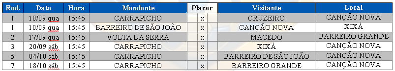 Programar os jogos válidos pelo CAMPEONATO REGIONAL DE FUTEBOL AMADOR – SANTO ONOFRE 2025, conforme tabela abaixo: